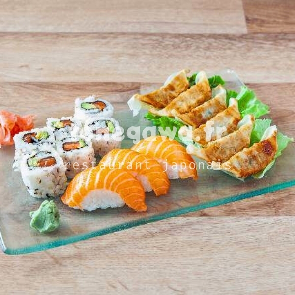 servi dans un bol de riz vinaigré, avec 1 soupe🥣 et 1 salade🥗